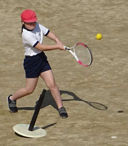 体育の授業で楽しくティーボールをしている様子です。
