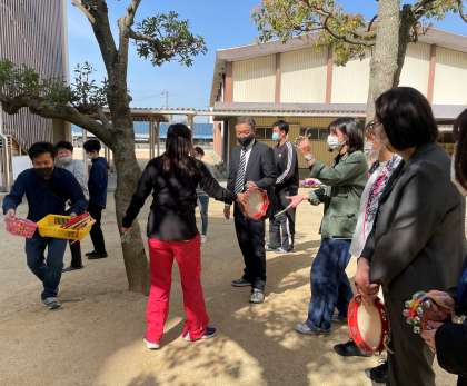 転任教職員を迎えるセレモニーが、中庭で行われました。