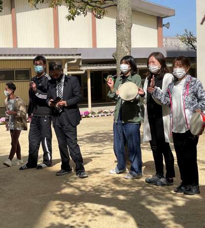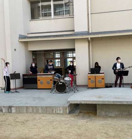 先生バンドの演奏で楽しく交流している様子です(^^♪