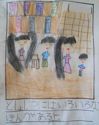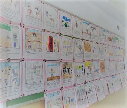 ★新2年生が、新入生に向けて書いた「楽しい学校の様子」です。1年生の教室にもたくさん貼っています。