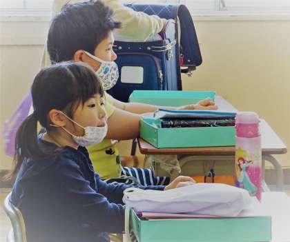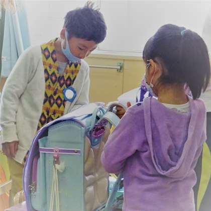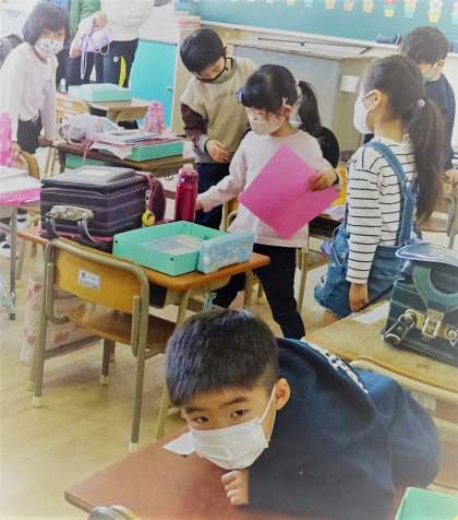1年生が、朝の用意をしている様子です。