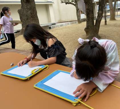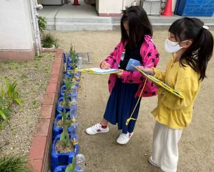 見つけたこと、気付いたこと、感じたことをプリントに書いていきます。