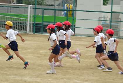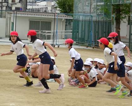 3年生は、体育の授業で整列の仕方や短い距離のダッシュ練習などをしました。