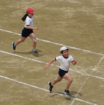 50m走の練習をしている様子です。