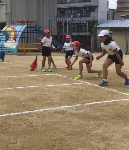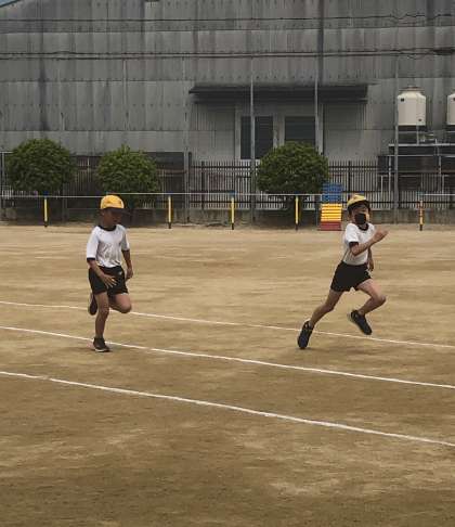 50m走の練習をしている様子です。