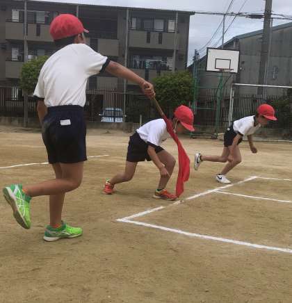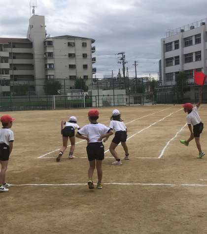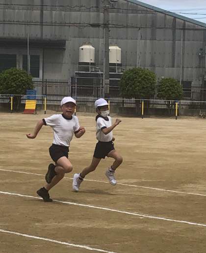 50m走の練習をしている様子です。
