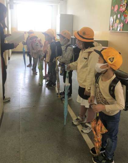 子どもたちの安全のため、いつもより多くの教職員が付き添って下校しました。