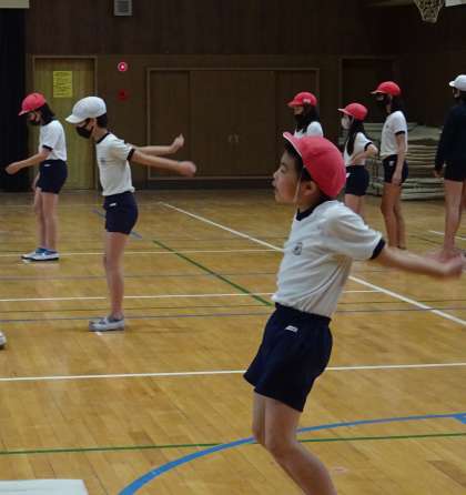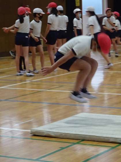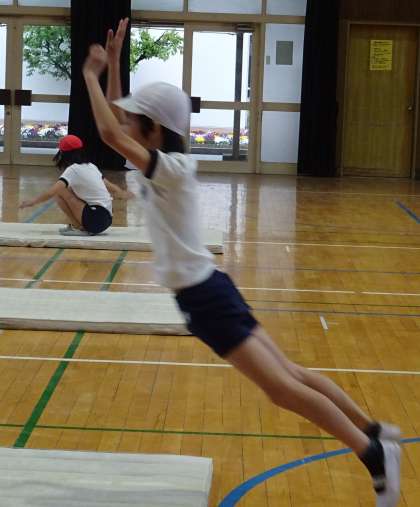 体育の授業で、立ち幅跳びの練習をしている様子です。