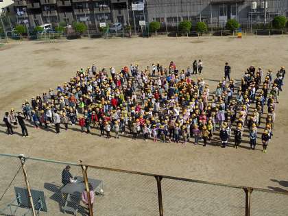 全校児童そろっての児童朝会です。