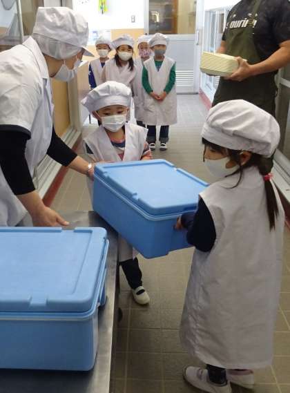 【1年生 初めての給食当番】
