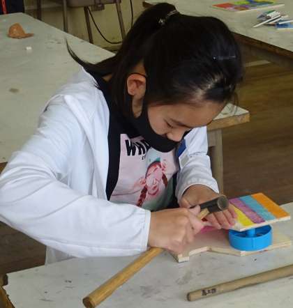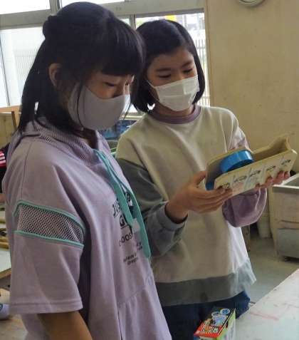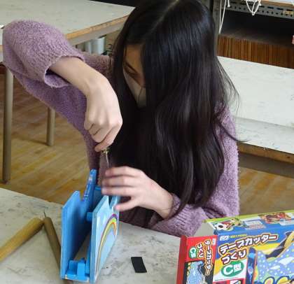 6年生が、テープカッターを作っている様子です。