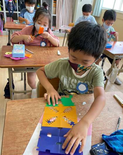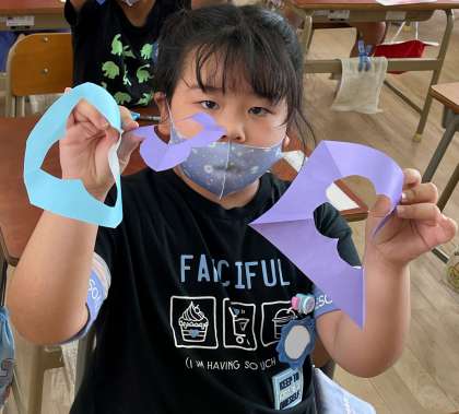 ハサミの切り口を少し変えるだけで、色々な形ができあがります。