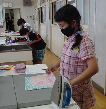 アイロンがけや湯沸かしを体験している様子です。