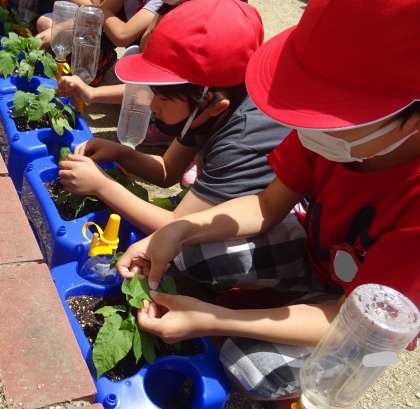 アサガオの観察をしている様子です。