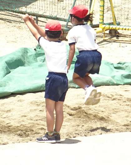 立ち幅跳びに挑戦している様子です。