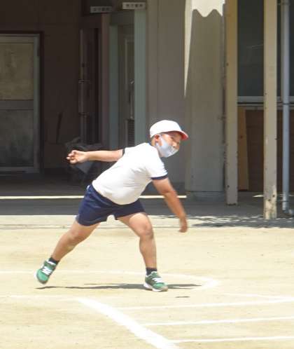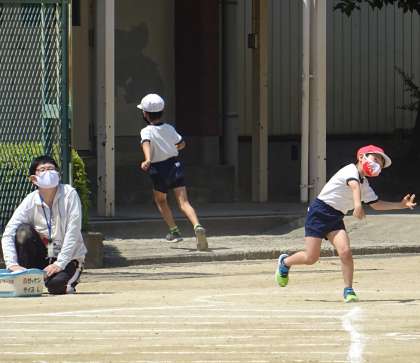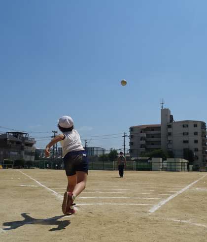 ⚾ソフトボール投げに挑戦している様子です。