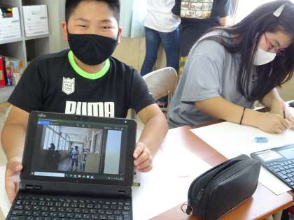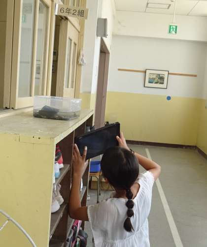 校舎や教室をタブレットで撮影し、自分のお気に入りの絵を描いていきます。