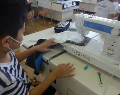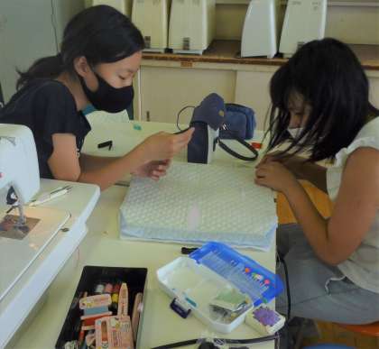 6年生は、家庭科の授業で巾着づくりに取り組んでいます。