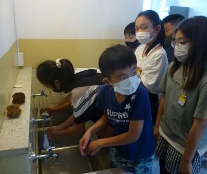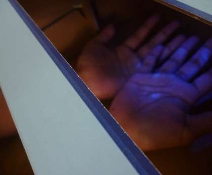 実際に手を洗った後、専用のライトを使って汚れが残っていないか確認してみましょう。