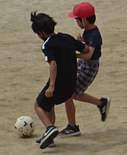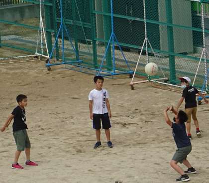 運動場で楽しく遊んでいる様子です。