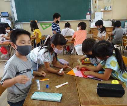 班で協力して「ちぎり絵」作りに挑戦しました。