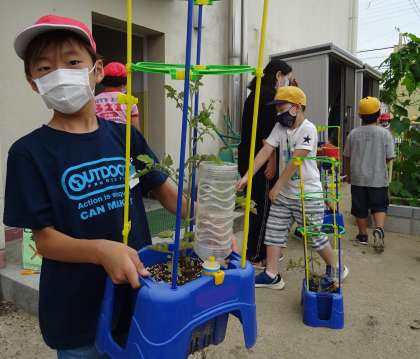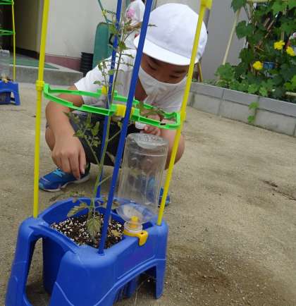 2年生 ミニトマトの水やり(6月18日)・・・2