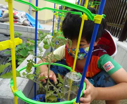 2年生 ミニトマトの水やり(6月18日)・・・3