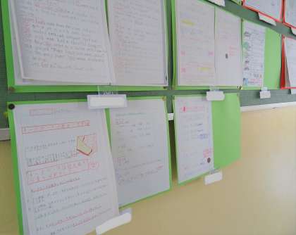 先週の「パワーアップ週間」で学習したことの続きを、自分の掲示場所に重ねて貼っています。