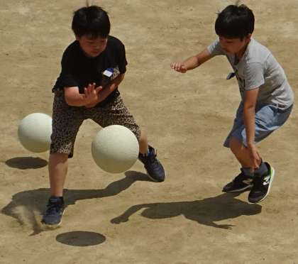 運動場で元気に遊んでいる様子です。
