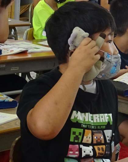 電話での「ていねいな話し方」を練習している様子です。