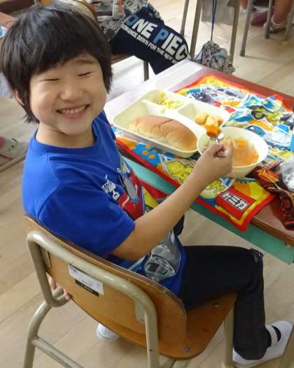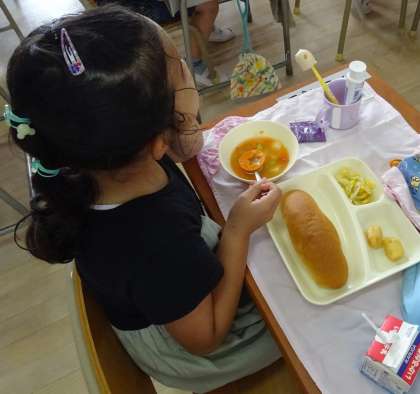 給食の野菜スープに、ラッキーにんじん🥕が入っていました。
