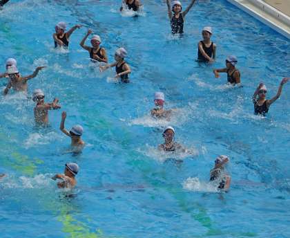 ノリノリの水慣れダンスでスタートです。