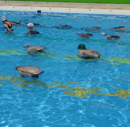 だるま浮きやクラゲ浮きに挑戦している様子です。