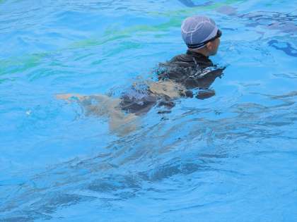 手をかく・キック・息つぎのタイミングが難しいですね。