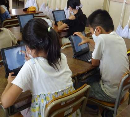 同じように、子どもたちも学習者用端末を使って、インターネットで回答します。