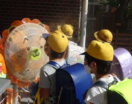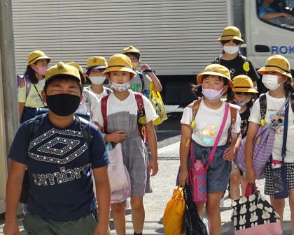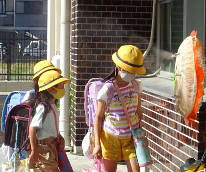 暑い中、子どもたちが元気に登校してきました。