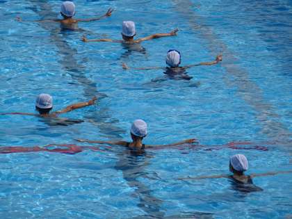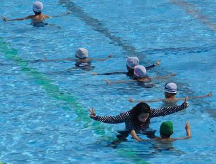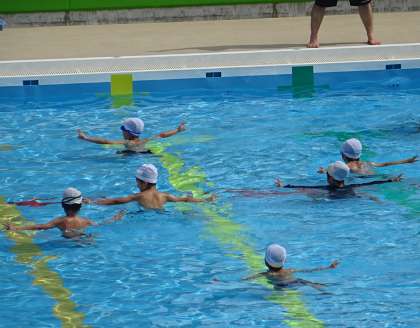 大きなプールでの活動に、子どもたちは大興奮でした。