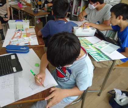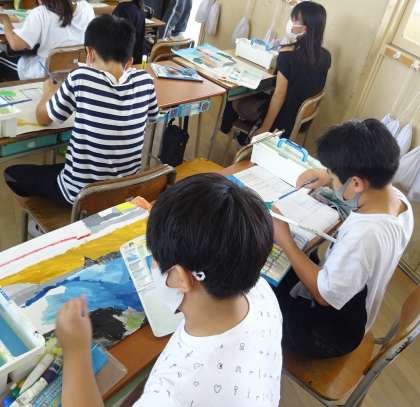 6年生は、小学校の思い出深い『大切な風景』を水彩画で表現しました。