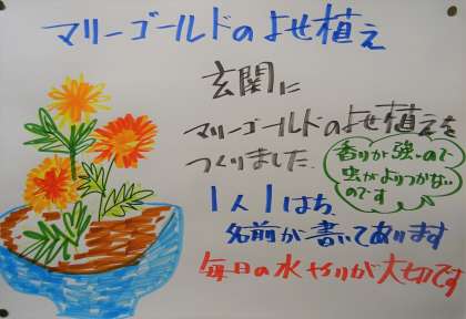 掲示板には、花や野菜を育てている様子が紹介されていました。