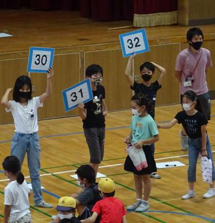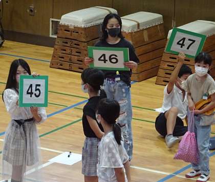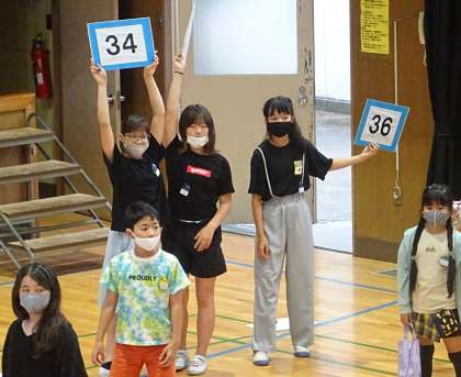 たてわり班で、集会活動「ジェスチャーリレー」をした時の様子です。
