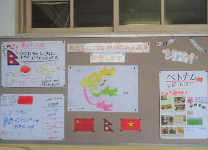 国旗・言葉・食べ物など、その国の特徴について、掲示板で紹介しています。