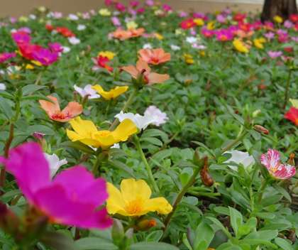 雨にも負けず、夏の暑さにも負けず、元気に咲いているのは「ポーチュラカ」です。