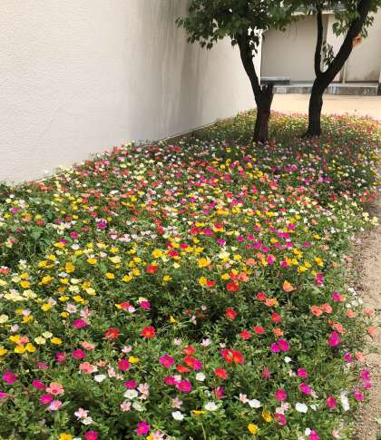 この「ポーチュラカ」という花、日光を浴びて花が開くので、夜や雨の日には、花びらが閉じています。