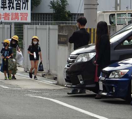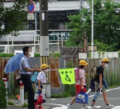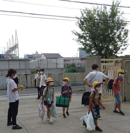 たくさんの荷物や夏休みの宿題を持って、子どもたちが元気に登校してきました。