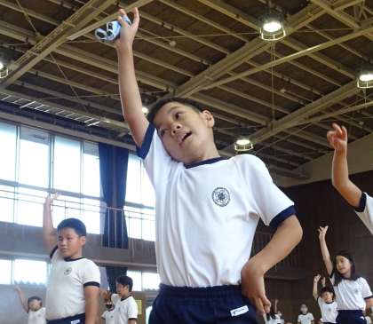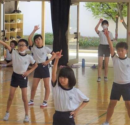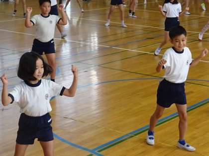 3・4年生が運動会の練習をしている様子です。