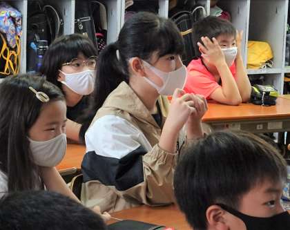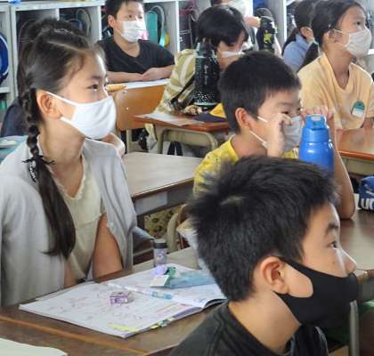 取材を受けたクラスメイトが画面に登場すると、みんな笑顔になっていました。