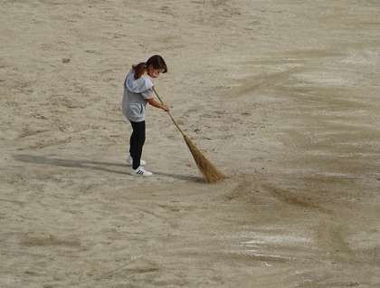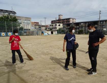 運動会に向けて「にがりまき」をしている様子です。