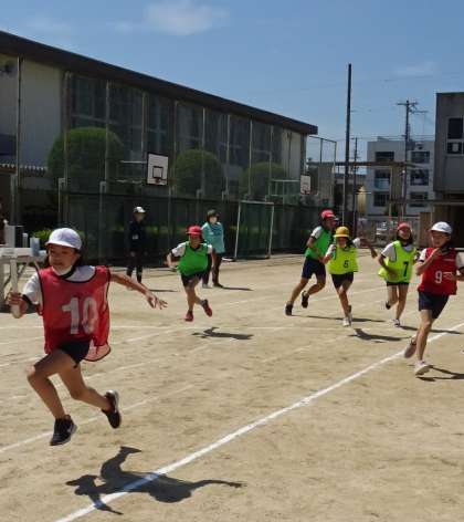 リレーの練習をしている様子です。