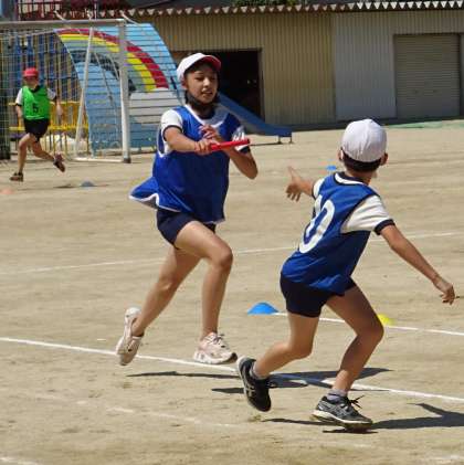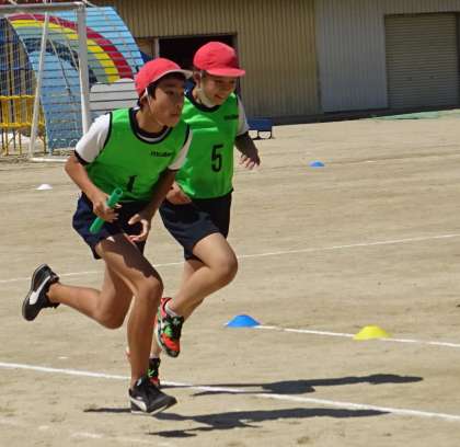 リレーの練習をしている様子です。