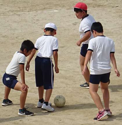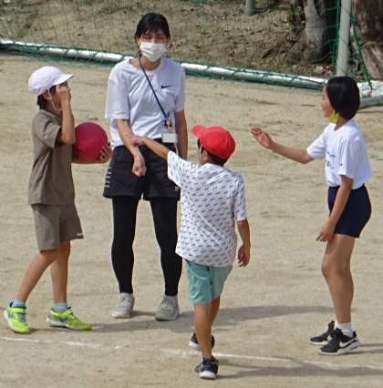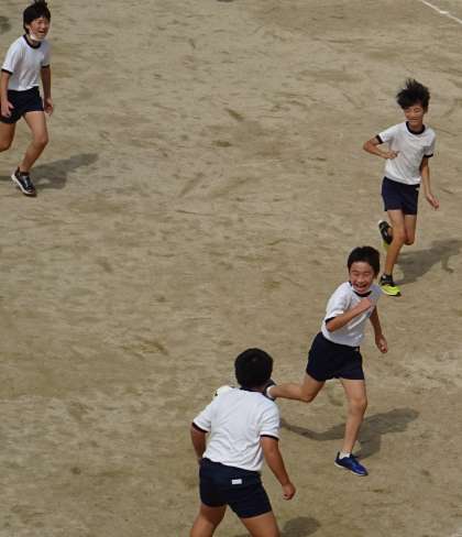運動場で元気に遊んでいる様子です。